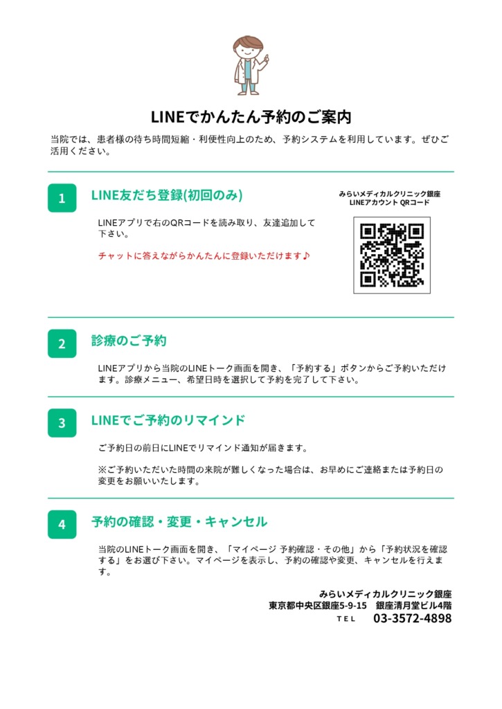 銀座院では、公式LINEを導入しており、LINEからご予約をいただけます。下記手順より、ご登録・ご予約ください。